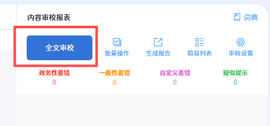 上传即校,政务性差错无所遁形。方寸智脑为您全面扫描全文,精准揪出政务差错,敏感词差错,知识差错,一般差错等,让专业审校变得简单高效,帮助您让资料减少风险,符合规范。