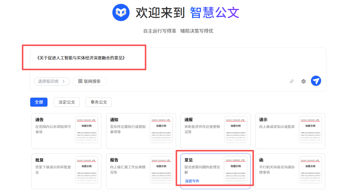 【核心价值:一句话快速生成符合政务规范的《意见》类公文初稿】