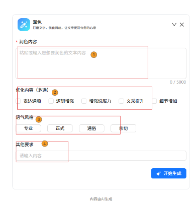 1.1 润色内容: 粘贴或输入您想要润色的文本内容。