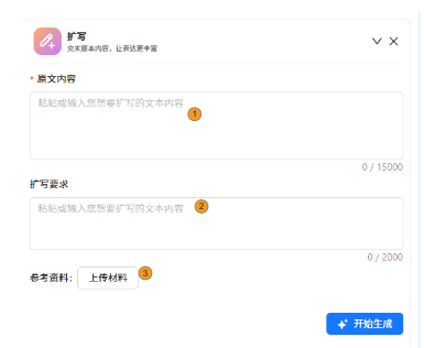 1.3 参考资料: 上传您扩写文本的想要参考的文件。