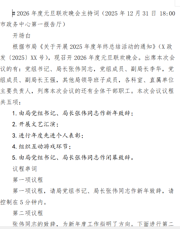 1.写作场景: 用于各类会议、活动、仪式的主持和引导。