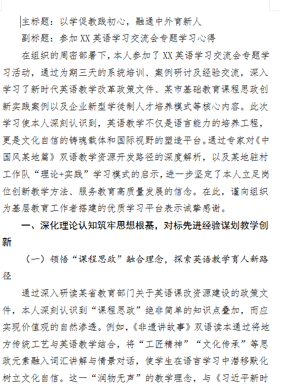 1.写作场景: 用于对学习内容、培训课程或阅读材料的理解与感悟。