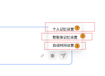 1.5 设置: 用户设置个体记忆设置,智能体记忆设置,自动时间设置。