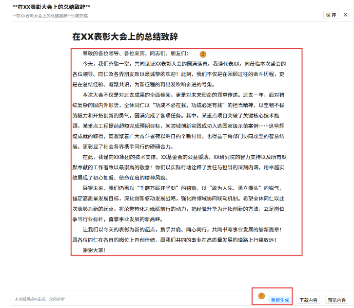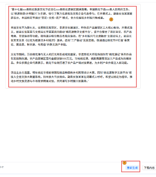 在此页面,您可点击底部重新生成,下载内容,预览内容。