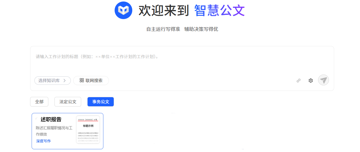 1.2 解决问题: 涵盖 14 种公文文种,全面覆盖专项工作计划、总结、动员部署讲话、消息稿、主持词、致辞、学习心得、信息稿、公开信等高频场景,助力政企用户高效办公。