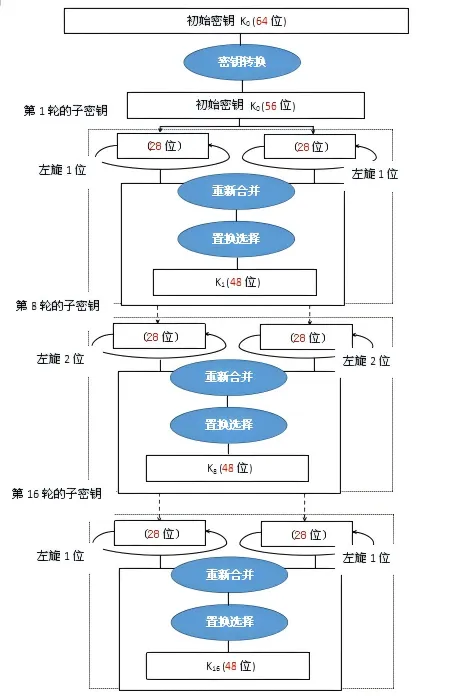 图1 在DES中计算子密钥的过程